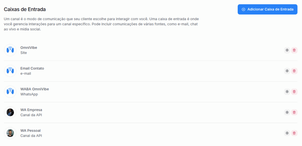 O OmniVibe permite gerenciar suas conversas de múltiplos canais através de um único dashboard.