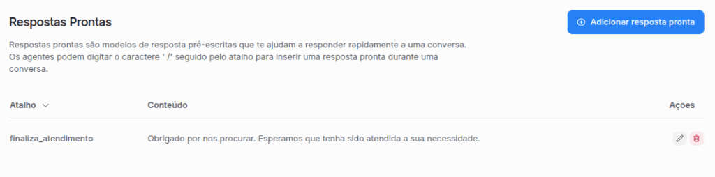 Respostas prontas são modelos de resposta pré-escritas que te ajudam a responder rapidamente a uma conversa.
